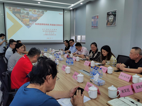 9月17日下午,由奉贤区金汇镇经济发展科、金汇镇经济管理事务中心、金汇镇商会主办的“以质量解锁未来·共创金汇新食代”质量月主题活动在金汇镇青商会会长单位——上海馥松食品有限公司举行。奉贤区市场局金汇所书记、所长乔磊,金汇镇经济管理事务中心书记张英,金汇镇经济园区主任方健,金汇镇青商会会长、馥松食品董事长陈自立出席本次活动。金汇镇商会10家优秀食品企业代表参加活动。