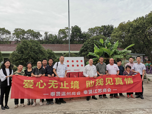 在中秋佳节来临之际,9月22日下午,奉贤区工商联温州商会联合区工商联江苏商会赴南桥镇、柘林镇和青村镇“阳光家园”开展关爱残障人士中秋慰问活动。区工商联温州商会会长王昌华、区工商联江苏商会会长吴彩琴等出席活动。
