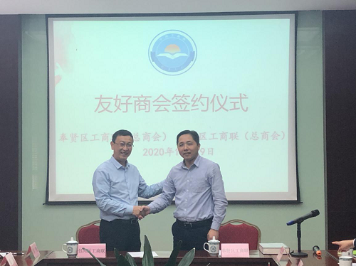 在上午的对接交流会上,奉贤区青年商会、工业综合开发区商会、奉城镇商会分别从多措并举推进青年企业家健康成长工作、以“党建+服务”推进“两个健康”、以党建引领打造商会品牌三个方面介绍了所属商会的工作开展情况。随后,两区工商联也分别就两地人文地理、产业优势、工商联机构设置、商会组织建设等方面进行了交流,同时也就各自服务民营经济“两个健康”的工作方式等进行了深入探讨。同时,在交流中,两区工商联还达成了将加强不定期的联系和交往,根据各自的产业特色,互动交流,促进内循环顺畅转动,为服务长三角一体化建设作贡献。