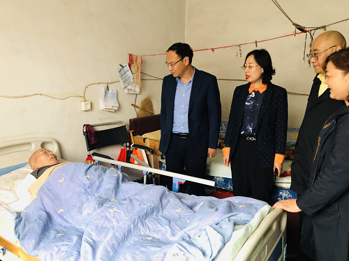 “这是我们四团镇商会庄会长,特意过来看望你。现在天气冷了,您自己要添衣保暖注意身体啊。这是四团商会的一点心意,祝您老身体健康,节日快乐!”四团镇党委副书记胡红兵说道。