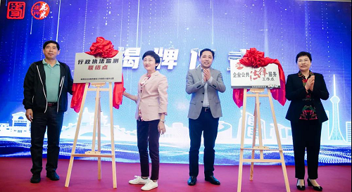 区委统战部副部长、区工商联党组书记张青,区总工会党组书记、常务副主席张辉凤,区司法局副局长钟凌,庄行镇工会主席钱洪良共同为庄行镇“企业公共法律服务工作点”、“行政执法监测联络点”揭牌。