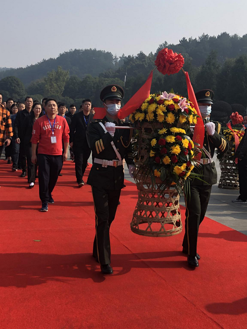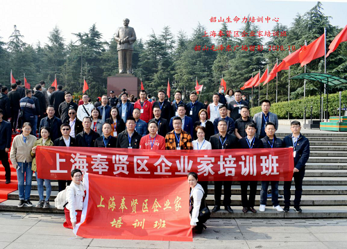 10月28日上午,在毛泽东铜像广场,学员们集体瞻仰铜像。奉贤区委统战部副部长、区工商联党组书记张青,区工商联党组成员、副主席刘海华代表奉贤区第四期民营企业家专题研修班为毛主席铜像敬献花篮。