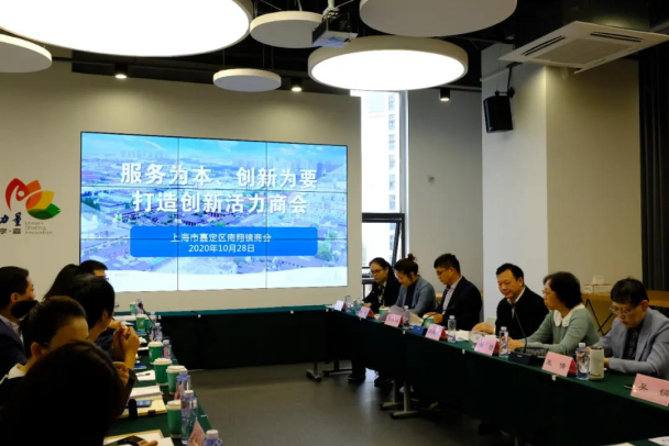 在南翔镇东社区邻里中心,全国工商联互学互促小组成员和市、区工商联一行参观了位于该中心3楼南翔镇统战之家内的南翔镇商会活动基地,并进行了座谈交流。会上,全国工商联互学互促小组成员充分肯定了南翔镇商会党支部创新教育形式、坚定理想信念的成功经验,了解了南翔镇商会多年来秉承“服务为本、创新为要”的理念,在政府、企业和社会中发挥桥梁纽带作用的成熟做法。