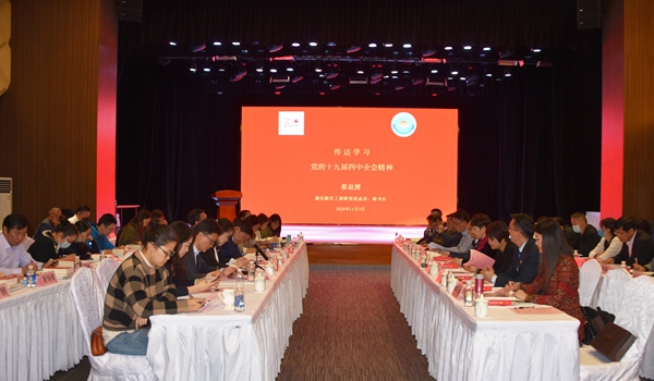 蔡晨赟传达了党的十九届五中全会公报精神、《关于加强新时代民营经济统战工作的意见》,同与会各位商会同仁一起学习、共同领会文件精神实质和主要内容。
