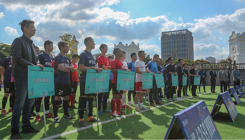 包蓓英宣布本次足球友谊赛开幕。随后,包蓓英、张青、肖健、段然、于涛、王赟共同为足球赛开球。