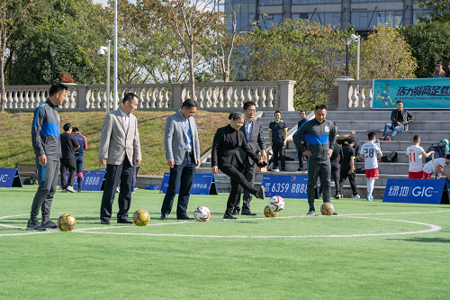 11月13日下午,由奉贤区工商联(总商会)、奉浦街道主办,奉贤区青年企业家商会承办,上海绿地集团支持的“活力贤商 足载未来”——第二届奉贤区民营企业家健康年活动暨“绿地杯”足球邀请赛在奉贤区四季生态园足球场正式拉开序幕。中共奉贤区委常委、统战部部长包蓓英,中共奉贤区委统战部副部长、区工商联党组书记张青,中共奉贤区奉浦街道工作委员会书记肖健,上海绿地集团事业二部副总经理、浦西公司总经理段然,前中国男足国家队成员于涛、王赟等出席开幕式。100多名年轻一代民营经济人士及企业高级管理成员组成的8支参赛队参加开幕式。开幕式由奉贤区工商联副主席、青年企业家商会会长陈智主持。