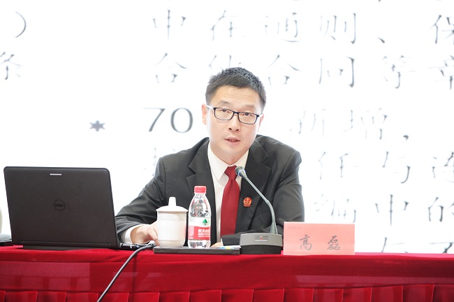 在民法典专题讲座上,区法院商事庭副庭长高磊结合司法实践,通过“以案释法”的形式为现场企业代表讲解了民法典相关内容。