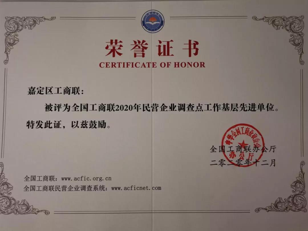 在12月9日召开的全国工商联2020年度民营企业调查点工作总结交流活动上,嘉定区工商联被评为“全国工商联2020年民营企业调查点工作基层先进单位”,并作为基层先进工商联代表作工作经验交流发言。