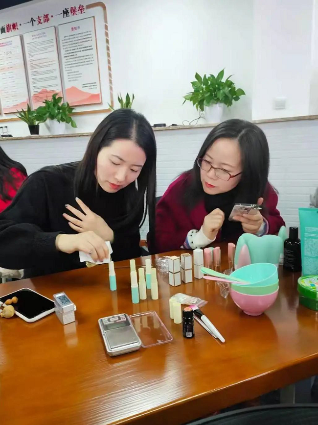 在老师的悉心指导下,“女神”们开启了专属于自己的手工之旅。润唇膏、精油口红、手乳在“女神”们的手里都是小case! 看着手中的得意之作,大家的脸上满是骄傲,纷纷用手机拍照留念,记录下这精彩的瞬间。
