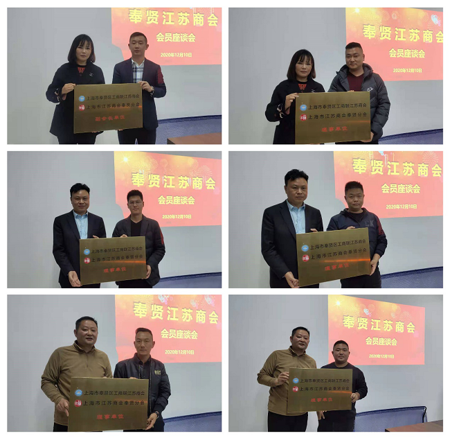 最后,吴彩琴、韩佩伦、高翌分别为新入会的企业家们颁发商会铭牌。