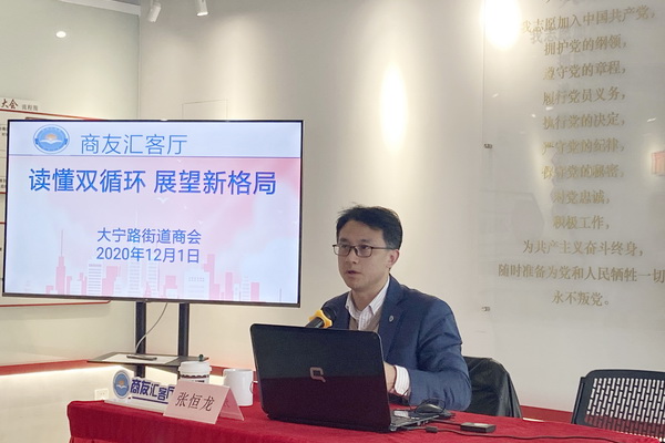 日前,静安区大宁路街道商会“商友汇客厅”,邀请了上海大学经济学博士、博士生导师张恒龙教授,围绕“读懂双循环 展望新格局”的主题,以小型沙龙的形式为商会会员企业作深度解读。