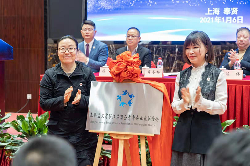 薛冬梅、吴彩琴为区工商联江苏商会青年企业家联谊会揭牌