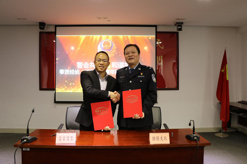 1月6日下午,奉贤区工商联青商会6名青年企业家在区工商联副主席、区青商会会长、上海永进电缆(集团)有限公司总裁陈智的带领下赴奉贤公安经侦支队开展“警会共建”活动。奉贤公安分局副局长王剑、经侦支队支队长孙强等参加签约仪式。