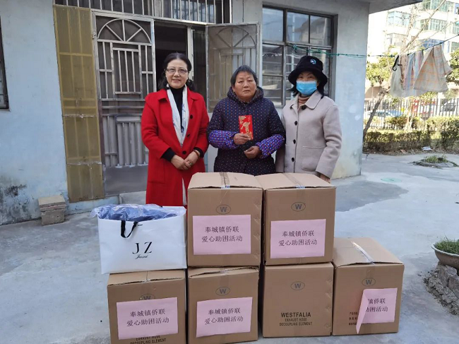 1月18日下午,奉贤区奉城镇商会联合镇侨联赴奉城镇洪庙村开展扶贫助困活动,并为困难村民蔡宝莲夫妇送去抗寒物资及慰问金。蔡宝莲十年如一日细心照顾瘫痪在床的丈夫,他们一家的感动事迹,在镇上家喻户晓。