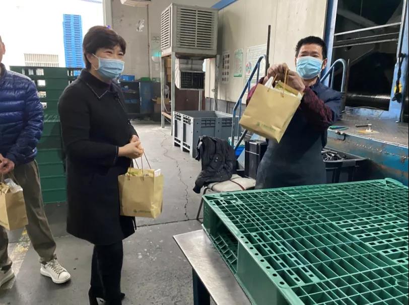 随后,杨洁一行来到上海鑫鹏塑料制品有限公司,为企业留沪人员带来了瓜子、糖果、炒货等慰问品,并与基层一线人员亲切交谈,希望大家在保证工作质量、工作进度的同时注意保暖、保重身体,公司总经理王德志对镇商会的暖心慰问表示由衷的感谢。