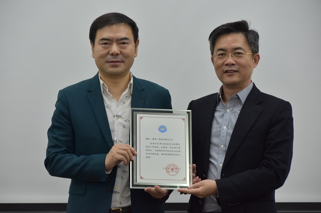会上,陈勇章还为伽蓝集团颁发了“全国工商联抗击疫情先进民营企业”奖牌。