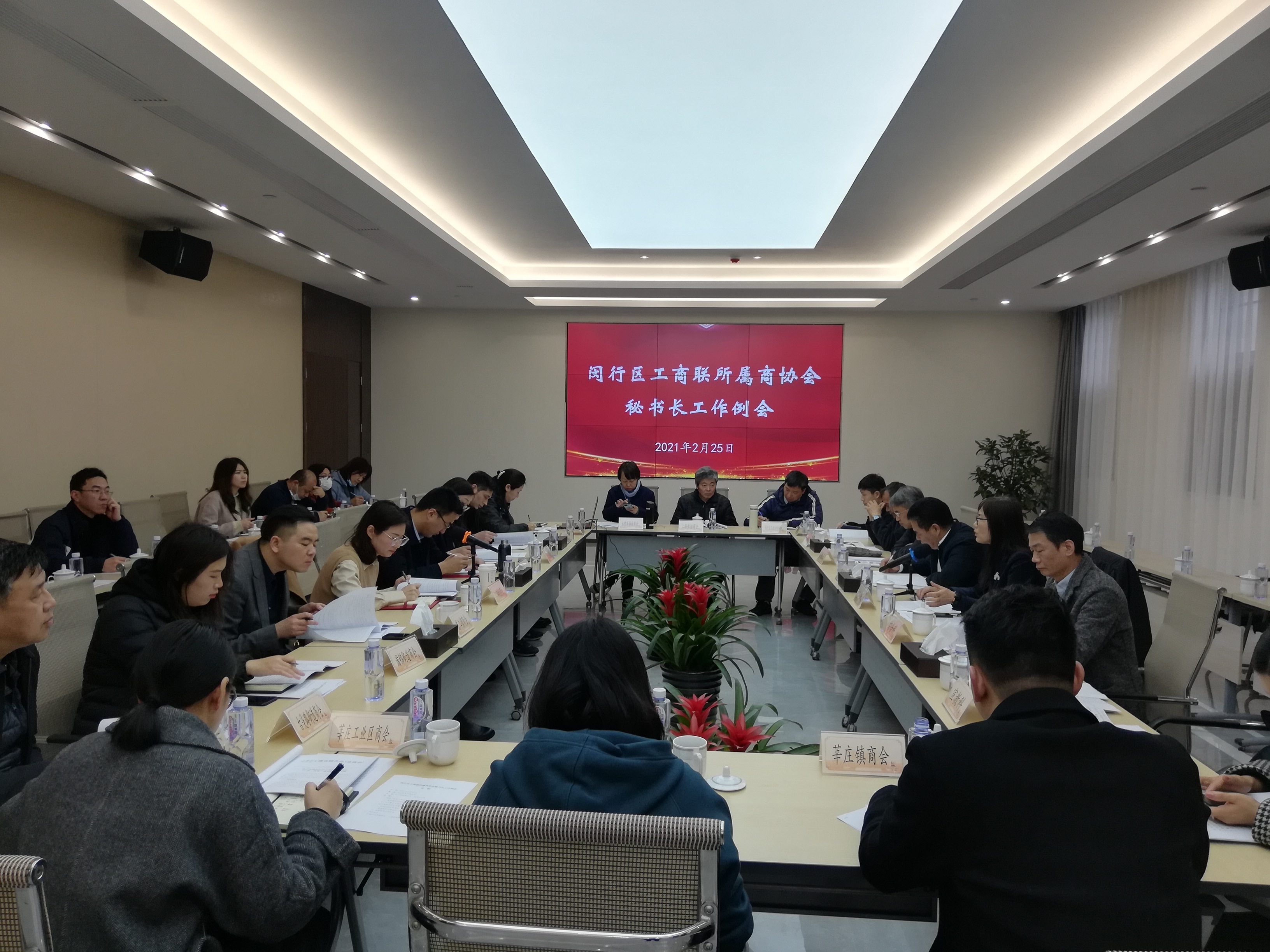 会上,颛桥镇、江川街道商会就商会工作作了经验交流,机关各科室布置相关条线工作。会前,闵行区工商联与金山区工商联联合召开所属商协会工作交流会,分别听取了金山区工商联党组成员、副主席孙海华关于金山区工商联工作介绍,朱泾镇党委委员、商会副会长王海珏关于朱泾镇人文、历史、地理及经济社会发展的情况汇报,金山区工商联副主席、朱泾镇商会会长、上海永太服装有限公司董事长李长虹关于公司发展历程的介绍及朱泾镇商会秘书长徐国峰关于镇商会建设工作的经验交流。
