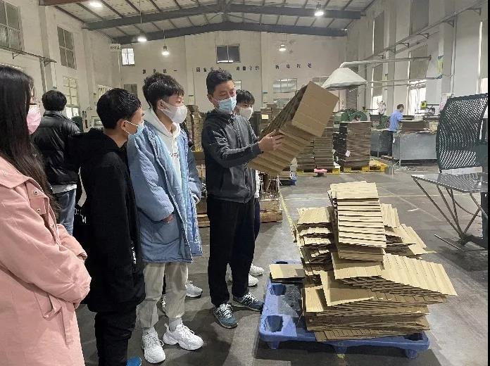 在上海帷鑫包装材料有限公司,副总经理马文成带领学生参观了生产厂区,介绍了企业的发展规划、主要产品的生产流程及未来产品革新。