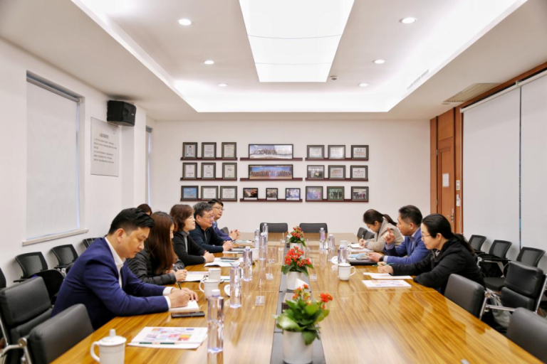 随后,一行人参观了伽蓝集团,并在伽蓝集团进行了座谈交流。张青对奉贤的新城建设、产业定位等基本情况进行了介绍,同时还就奉贤区工商联今年围绕工商联换届和建党百年两大工作契机将开展的工作一一进行了介绍与说明。