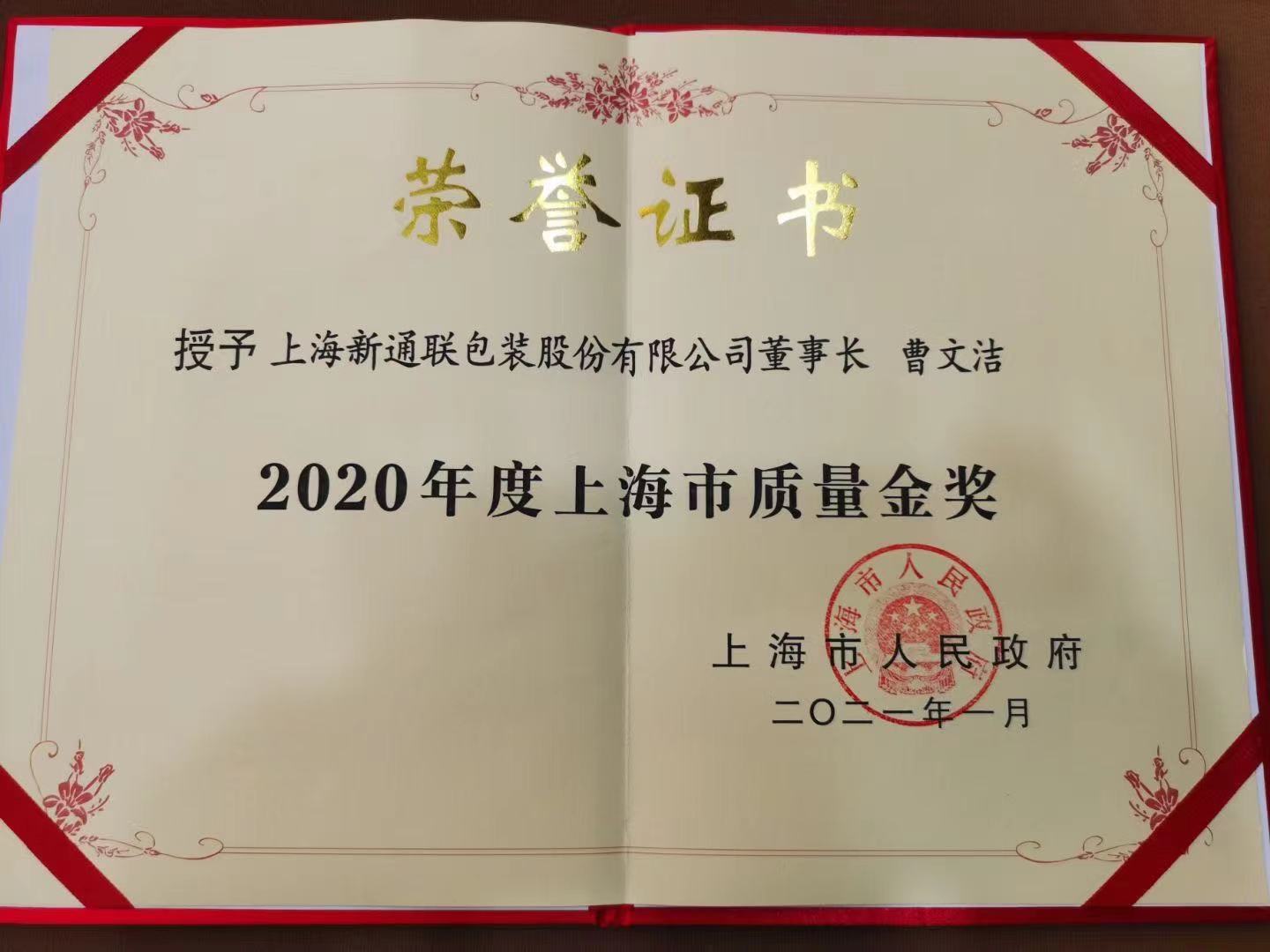 3月31日下午,在2021年度上海市质量工作会议上,市总商会副会长、宝山区工商联主席、上海新通联包装股份有限公司董事长曹文洁荣获上海市质量金奖(个人)。