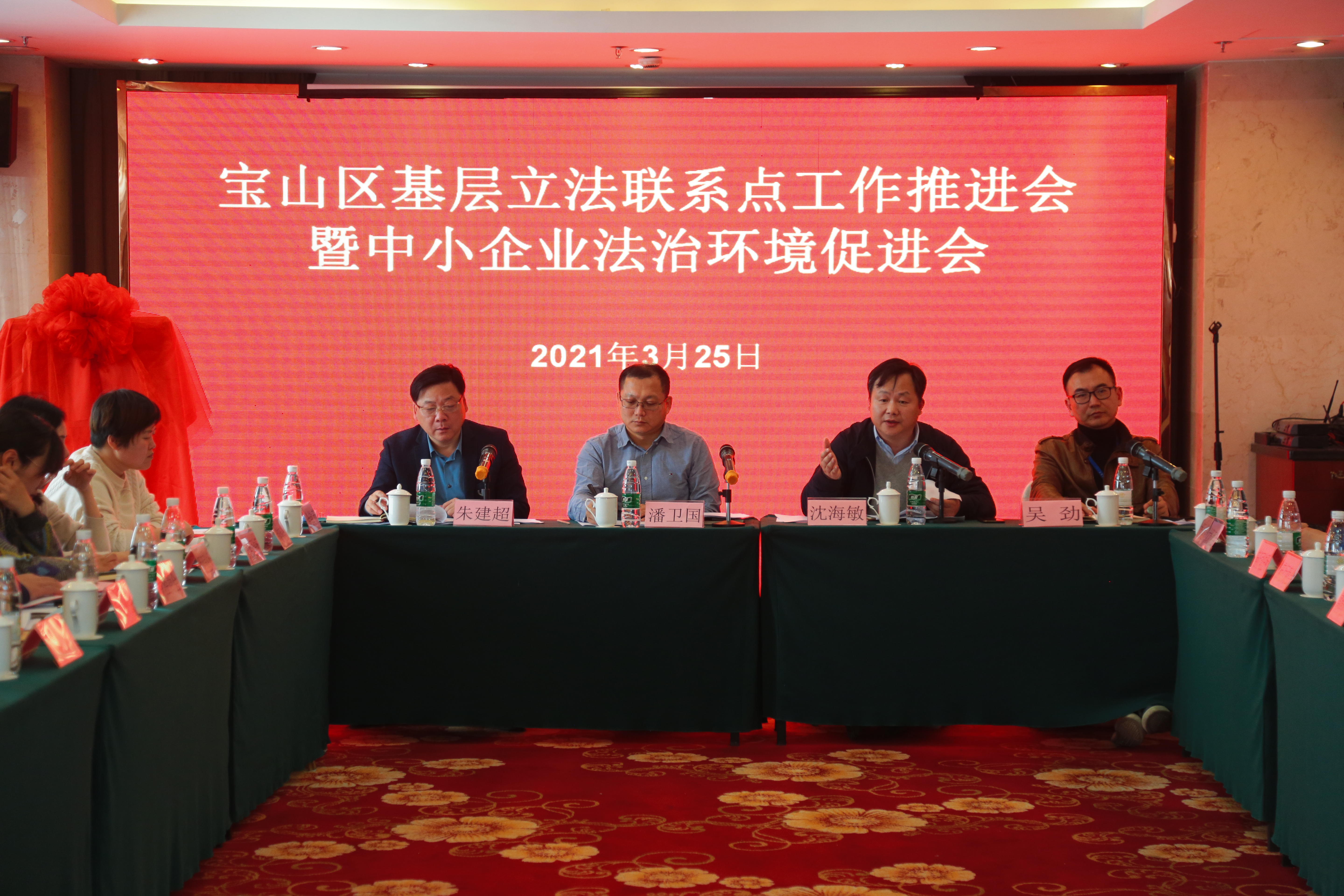 为了进一步健全基层商会与基层司法所的合作机制,提高基层商会的法律服务能力,营造良好的营商环境,3月25日,宝山区工商联联合区司法局召开了宝山区基层立法联系点工作推进会暨中小企业法治环境促进会。区委统战部副部长、区工商联党组书记潘卫国,区司法局局长沈海敏,各街(镇、园区)商会、行业(异地)商会、团体会员会长和秘书长,区律师协会律师代表及区工商联和司法局的部分职能科室负责人近60人参加了会议。会议由区工商联副主席朱建超主持。