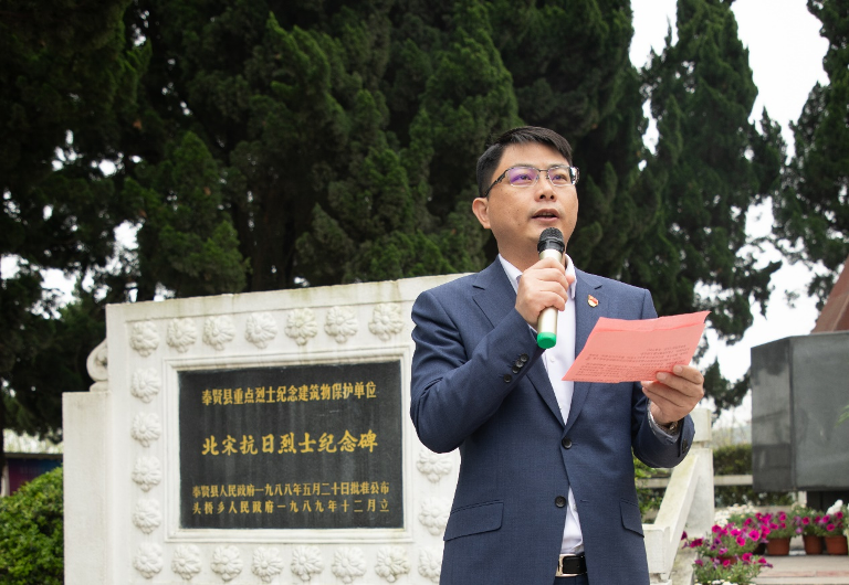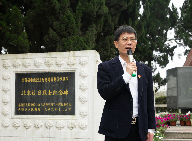 清明追思,家国永念。4月2日上午,奉贤区工商联江苏商会党总支党员及会长代表近20人在党总支书记翟杰的带领下,来到位于奉贤区头桥的北宋抗日烈士纪念碑,举行清明祭扫暨“缅怀革命先烈,永葆初心不变”党性教育活动。活动由区工商联江苏商会党总支副书记、常务副会长、上海高准岩土工程有限公司总经理戚国强主持。