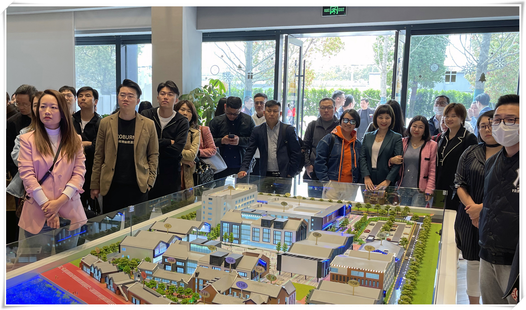 随后,大家参观了位于上海智力公园西侧的龙盛活力小镇,园区运营单位——上海筑恺实业有限公司总经理周旭东精心组织并热情接待。在沙盘讲解后,周旭东亲自陪同大家参观了园区,并就大家提出的各类问题作了全面而细致的解答。龙盛活力小镇总投资超过4亿元,由老旧厂房装修改建而成,项目总建筑面积5万平方米,正在打造成集办公、商业和配套服务为一体的宝山科创中心主阵地重要承载园区,目前已经成功吸引到腾讯、闪送、大隐等一批知名品牌企业入驻。