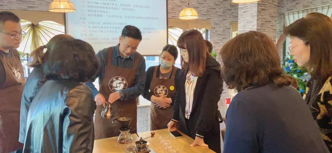 咖啡师陈老师耐心细致地从咖啡的起源、品牌品种、咖啡豆烘焙、制作条件等方面,为大家普及了咖啡基本知识,指导大家亲手体验了手冲咖啡的制作流程,并手把手教大家制作拿铁咖啡拉花技能。专业点心师何老师则教大家制作了西式点心“肉松小贝”,让大家在欢乐的学习和热烈的交流氛围中欢度了美好时光。
