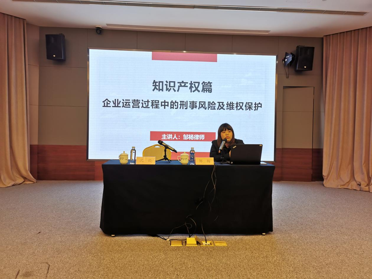 本场讲座紧跟国家实施知识产权强国战略的趋势,并充分考虑了园区企业知识产权发展水平,邀请专业人士为企业进行现场培训。嘉定区市场监督局知识产权管理科辛美华讲解了市、区两级知识产权相关政策及申报中的注意事项。随后,来自上海律宏律师事务所的邹杨律师作了“企业运营过程中的刑事风险及维权保护”专题报告,从企业防范风险、提高维权能力的角度,结合实例讲解了常见的知识产权类刑事犯罪案例和企业维护自身知识产权的措施,并就近期施行的《上海市知识产权保护条例》的具体条款进行详细阐述。整场讲座内容丰富、案例生动,企业代表踊跃提问,就自身实际问题与专家进行深入交流。