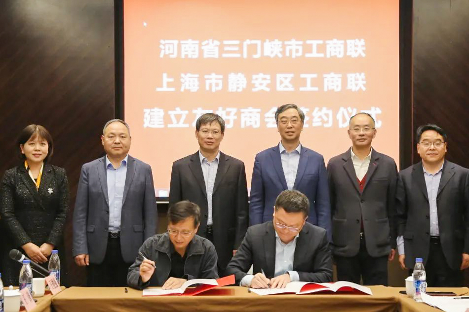静安区委统战部副部长、区工商联党组书记李帆和三门峡市委统战部副部长、市工商联党组书记王志超代表双方签署了友好商会协议。