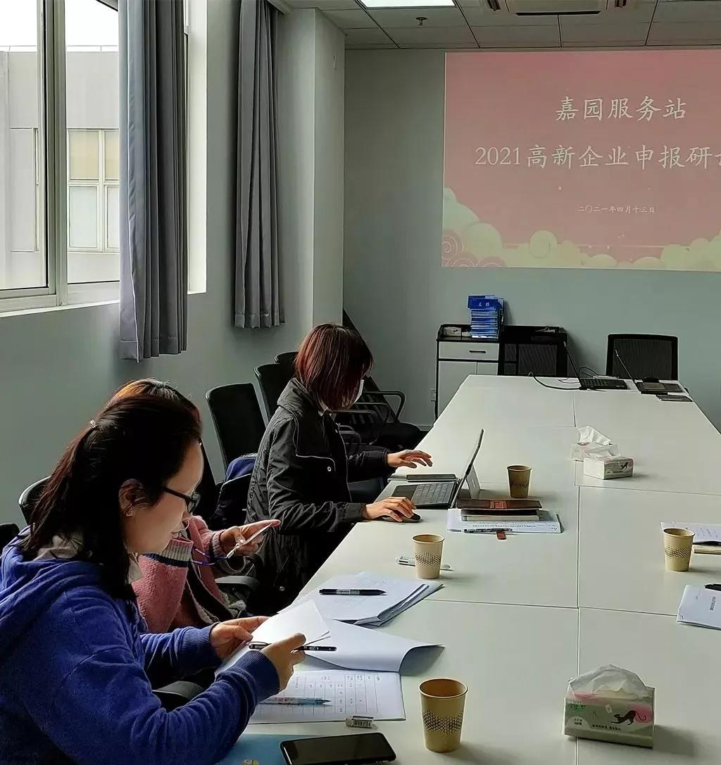4月16日下午,嘉定区徐行镇商会在科嘉示范园嘉园服务站举办高新企业申报研讨班,来自园区的多家企业代表参加。