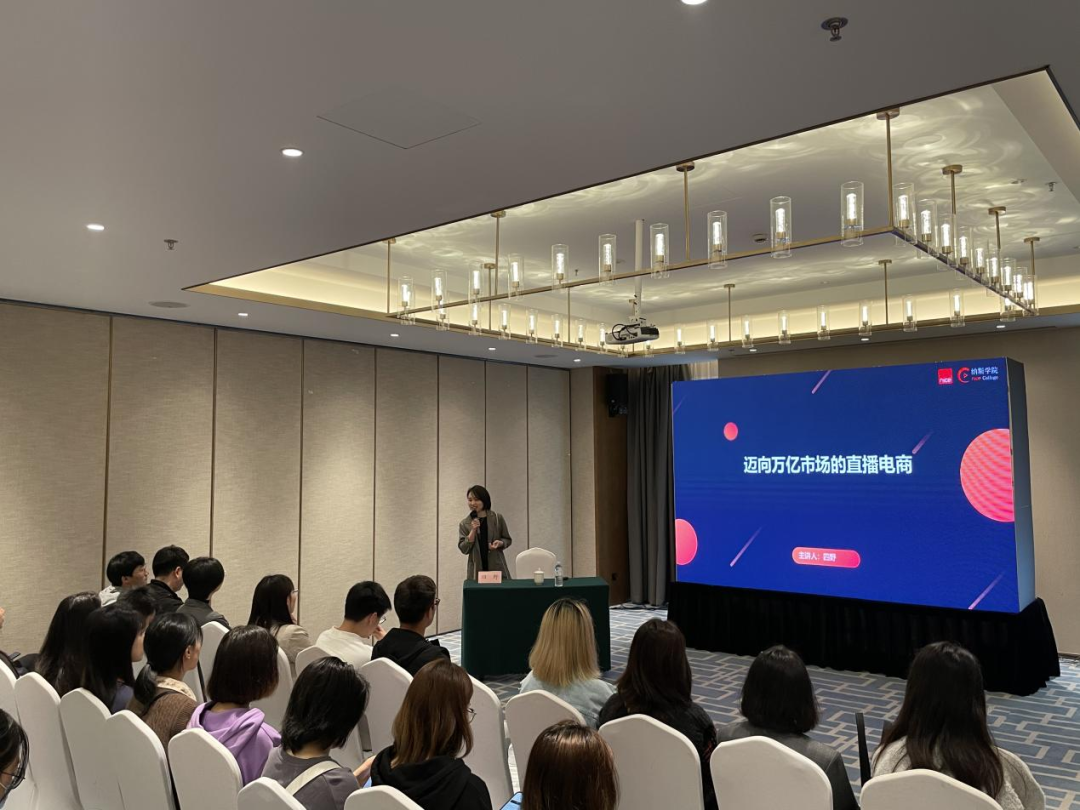徐志萍向师生们介绍了商会基本情况、品牌建设和“会企同心 益企同行”主题系列活动重要内容。本次活动特邀纳斯学院全职讲师、多商家账号操盘手四野老师,作《迈向万亿市场的直播电商》专题报告。她首先从就业选择——当下最火的行业直播电商为什么会火开始,再通过直播电商5年发展简史、红人是如何自我成就的故事以及当前5G科技、平台扶持、政府人才政策、企业岗位空缺、变现数据支撑等利好政策情况等方面,为大家讲述了直播电商行业的背景、现状和广阔前景,让学生们对直播电商有哪些机遇,我要不要做、怎么做等问题有了更加深入的理解和认识,对今后学生踏上社会的职业选择也具有一定的参考价值。