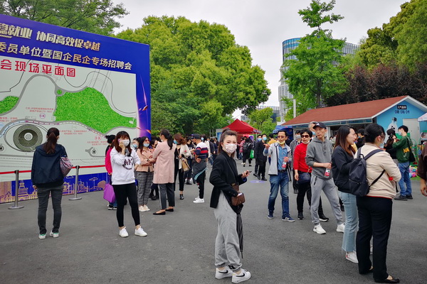 4月22日下午,“凝心聚力稳就业,协同高效促卓越”2021年静安区政协委员单位暨国企民企专场招聘活动在大宁公园举行。