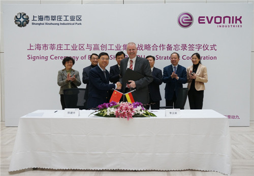 11月26日,上海市莘庄工业区与赢创工业集团战略合作备忘录签字仪式暨赢创德固赛(中国)投资有限公司上海分公司定向捐赠莘庄工业区敬老院二期医护室设备意向书签约仪式在赢创德固赛(中国)投资有限公司上海分公司举行。上海市莘庄工业区经济技术发展有限公司总经理陈建平和赢创大中华区总裁李汉卓博士共同签署协议,闵行区委副书记、区长赵祝平,上海市莘庄工业区管理委员会主任、公司董事长王备军,上海市莘庄工业区管理委员会副主任、公司副总经理张昕,赢创涂料及添加剂业务部亚太区总经理洪中博士,赢创中国公共与政府事务副总裁脱建梁,赢创大中国区行政及保险管理部总监庄磊出席签字仪式。