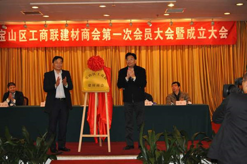 11月28日,宝山区工商联建材商会成立大会在宝山宾馆友谊厅隆重召开。宝山区委常委、统战部部长曹锡康出席会议并讲话。曹锡康部长和区工商联主席、上海东鼎投资有限公司董事长邵东明为建材商会揭牌。区政协副主席叶建英,宝山区委统战部副部长、区工商联党组书记居根宝出席会议。区商务委、区经信委、区建交委、工商宝山分局、区税务分局、区金融办、区社团局、罗泾镇等部门领导,市钢贸商会、市房地产商会、区建筑协会、区工商联各行业(异地)商会、罗泾镇商会、友谊路街道商会等团体负责人,浦发银行等金融机构代表,会员企业代表等共140多人参加会议。