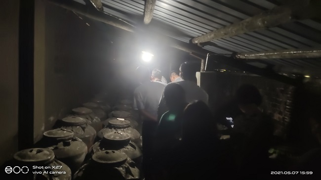 在镇青商会会长、上海神仙酒厂董事长李晨楠的带领下,会员们参观了神仙酒厂的酿酒基地,尤其探究了处在半地下室的神仙老坛酒。一进入地窖,虽然伸手不见五指,但一股醉人的清香让会员们精神一振,纷纷竖起大拇指。借助手机的亮光,一坛坛的老窖酒都半掩埋在地下,顶端小卡片上记载着酒的“出生日期”,有的会员惊奇地发现有些老窖白酒比自己还“出生”得早。最让会员们感兴趣的就是“神仙酿与大师一起美酒”的调酒DIY环节,在工作人员的指导下,会员们选用基础酒及调味酒,调制五香型或绵柔型的基酒,喝着亲手调制出来的白酒,大家都赞不绝口。