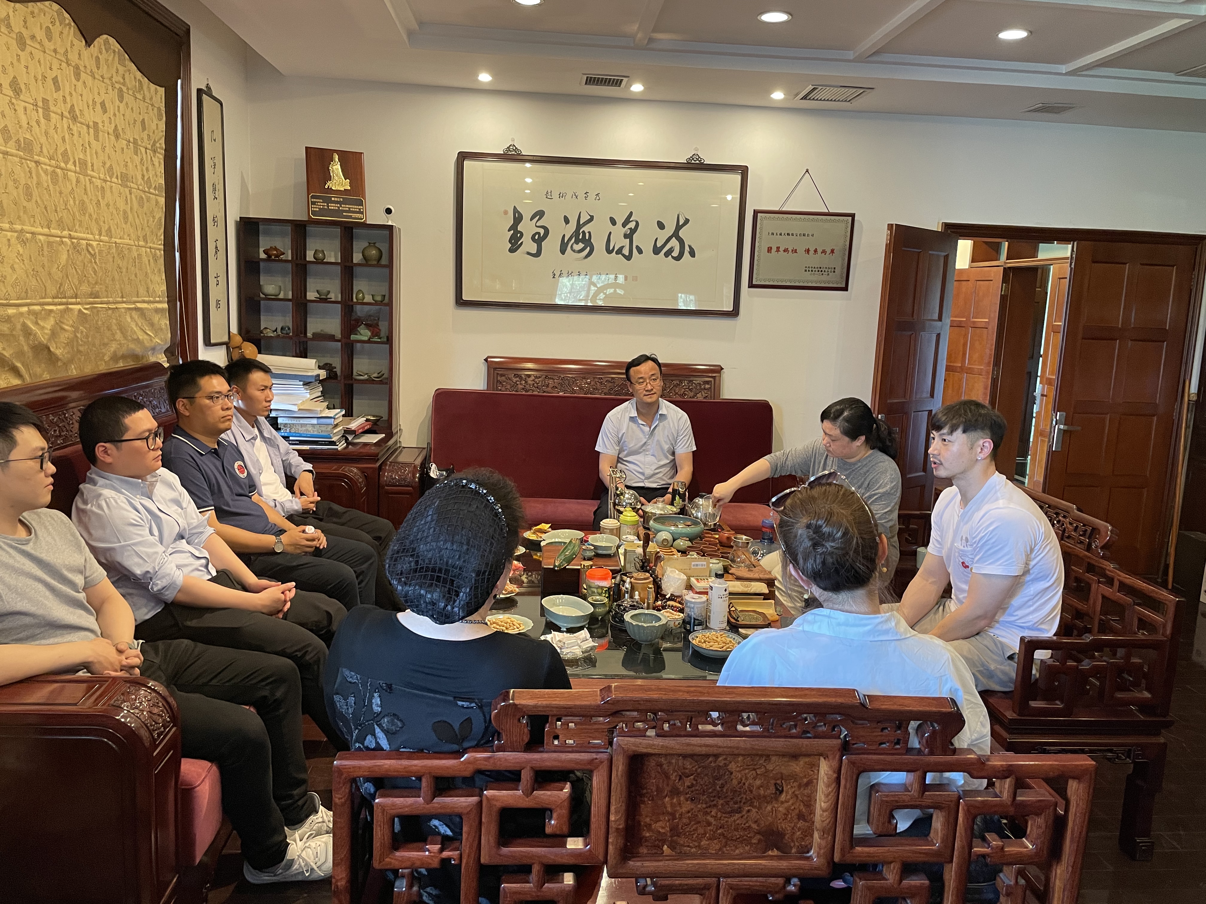 之后,一行人回到会长单位玉成天赐公司,在会长办公室,在秘书长康文军的带领下进行了学习和探讨。赵子钰还带领大家参观了玉成天赐,并分享了鉴玉的技巧和方法。