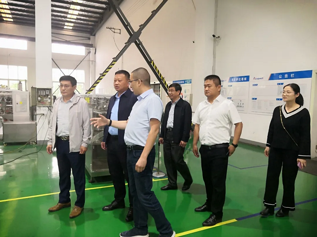 随后,大家来到地处柘林镇的上海欧朔智能包装科技有限公司,公司总经理刘小珲热情接待。路敏一行参观了公司的生产流水线及产品,刘小珲介绍了公司的基本情况、发展历程、企业文化和企业专利等。上海欧朔是一家从事水平式全自动包装机械设备制造、销售与售后服务的现代化企业,产品广泛应用于食品、化工、制药等领域,公司现拥有七十余项相关专利。