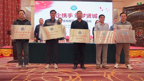 随后,为各所属商会颁发“政会银企”综合金融服务点牌匾。