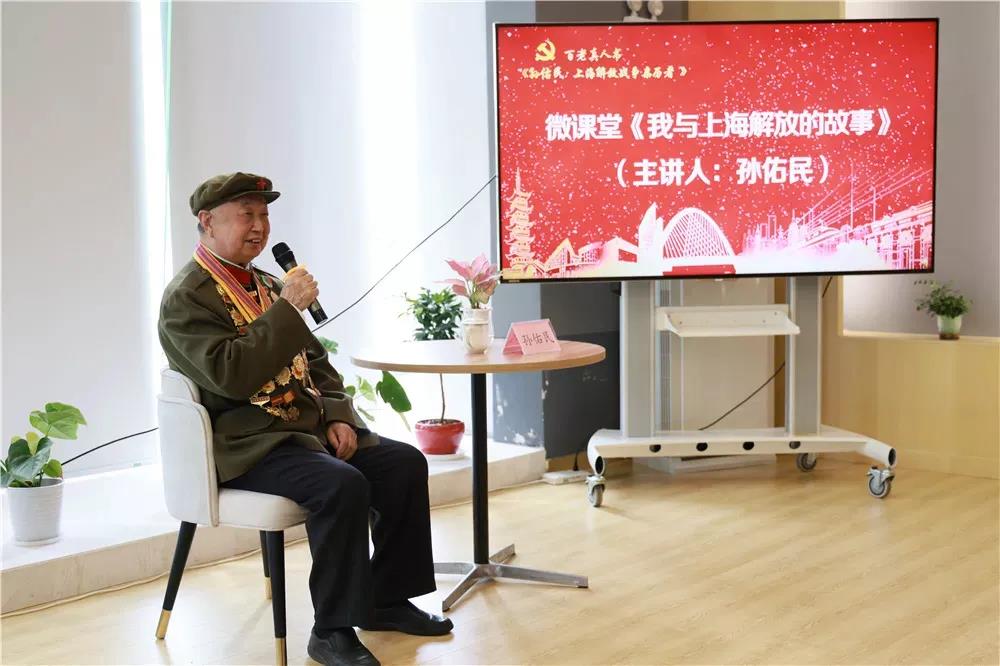 “解放上海的时候,我是炮兵。由于地面不平整,炮兵的速度跟不上步兵。当时印象特别深刻,当地的老百姓们就拿出了自家的稻草,甚至拆下了自家的门板来给我们铺路。炮兵放炮需要制高点,老百姓们就为我们爬树放哨,在他们的帮助下,我们才能顺利地完成任务。上海的解放是无数英烈用生命换来的,是老百姓们倾尽所有换来的,这场解放的胜利是属于老百姓的。我们要牢记这些艰辛的革命岁月,更要珍惜当下的幸福生活。”课上,孙佑民分享了解放上海时,在极端艰苦的条件下和战友并肩作战,在老百姓的帮助下共同对付敌军的英勇事迹,带领党员们共同回顾了战火硝烟的岁月,朴实的言语中,无一不透露着孙佑民对牺牲战友的怀念之情,以及自己对党忠诚、对自己付出的无怨无悔,令党员们感动不已。