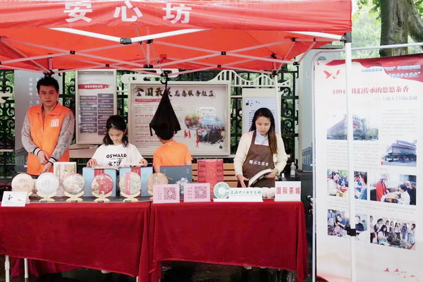 在5月23日至5月26日的“百年同新•百企百福”活动第三站上,商会会员企业大宁国际茶城设摊宣传和讲解茶的知识,普及中国茶文化,感受茶文化的魅力。活动现场,为惠及社区居民和企业白领,精心准备了茶品、茶具,举办“买一送一”福利活动。