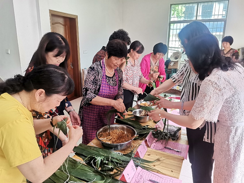 比赛火热进行,评委们看到现场热烈的气氛都忍不住想要试一下,大家互帮互助、有说有笑。经过激烈的拼搏与奋斗,最终余惠芳阿姨技高一筹,获得了“金粽奖”。