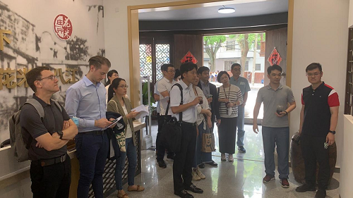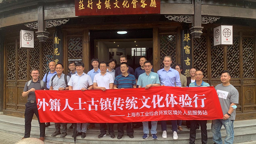 外企高管们首先参观了庄行古镇文化会客厅。在讲解员的引导下,大家兴致勃勃,边聆听、边观察着室内展示的物件与照片。鼎丰分号“泰记”酱园是清朝末年创立的,距今已有110多年的历史,其自产的各类酱油、腐乳、米醋等酿造食品深受顾客的喜爱。毓秀桥位于庄行老街市河之上,始建于民国十三年(1924年),该桥南北跨南桥塘,造型优美、古朴典雅。这些古镇文化深深感染了所有的参观者。