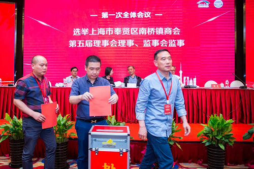 上海奉贤二建股份有限公司董事长万石龙当选南桥镇商会第五届会长;上海双木散热器制造有限公司董事长朱林群、上海朋泰机械科技有限公司总经理潘诗良当选南桥镇商会第五届常务副会长;上海志远电子商务发展有限公司总经理王菅、上海奉贤燃气股份有限公司董事长石东等16人当选南桥镇商会第五届副会长;上海百富勤(集团)有限公司董事长唐秋荣当选南桥镇商会第五届监事会监事长;张冲当选南桥镇商会专职秘书长。
