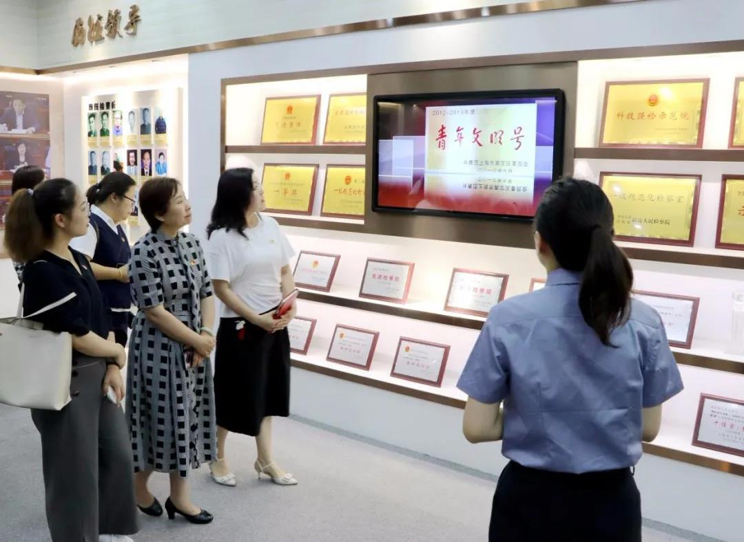 在讲解员的带领下,大家参观了检察服务中心、审讯室,了解了检察工作中的具体设置、流程和技术手段,让党员们体会到了案件审理的细致严谨以及检察官勤勉敬业的工作作风。在院史陈列室中一幅幅珍贵的照片,真实展现了嘉定人民检察院几十年来的风雨征程。在参观过程中,一间充满温馨、童趣的房间吸引了大家的目光,在讲解员的介绍中,大家了解到这是检察院2016年推出的“嘉检七色花”未成年人检察工作品牌,致力于守护未成年人的健康成长,让大家感受到了温暖与力量。