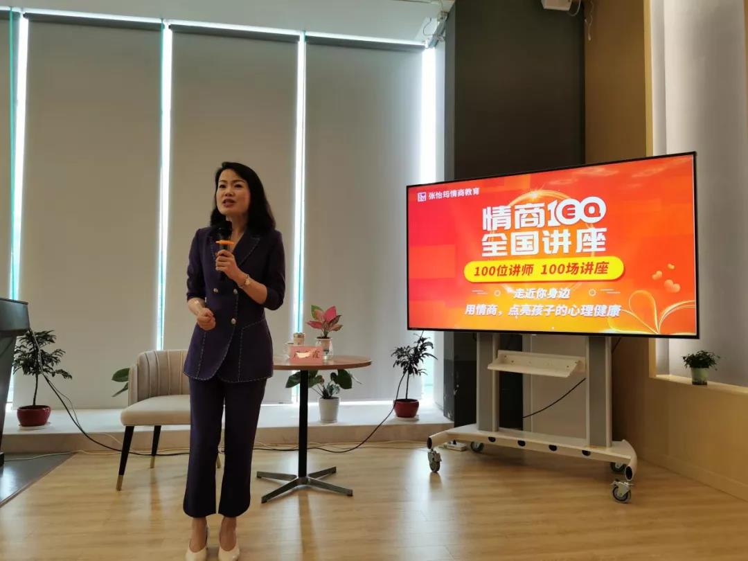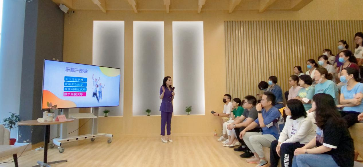 本次讲座的主讲人是约翰·霍普金斯大学儿童发展心理教育认证培训师、张怡筠情商工作室资深讲师、国家二级心理咨询师严冬霞老师。她首先从“你觉得什么是幸福的家庭”出发,围绕乐观为什么重要、习得性无助与习得性乐观、如何教会孩子正向解释风格、父母怎么做才能教出乐观的孩子等四个方面,以自己与女儿的真实案例为切入点,结合与家长们互动“半杯水”、“爷爷阻止玩抖音”、“女儿刘海遮痘痘”等3个小故事,对孩子的情商教育展开了深度讨论。两个多小时的活动,最后在一曲“乐观三部曲”中,大家全体起立,唱起了“幸亏没有更糟,我喜欢的是,我要利用这个优势,做个乐观的大师”结束了本次情商教育课程,受到了家长们的高度肯定与好评。