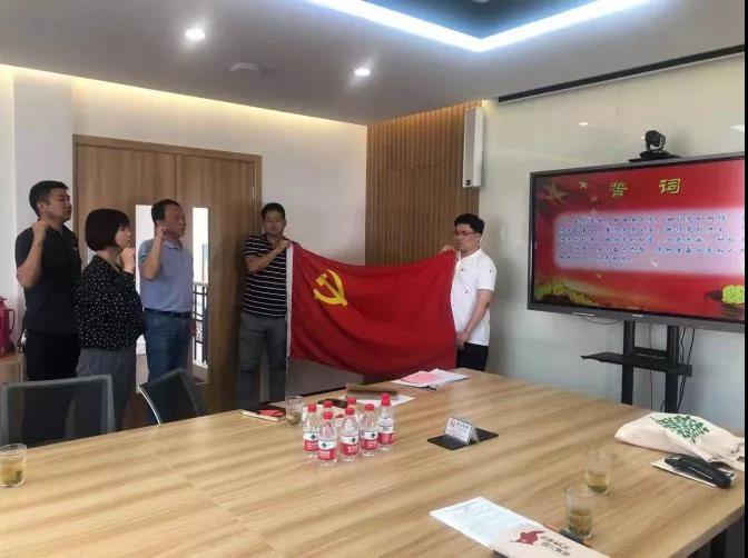 最后,由嘉定镇街道商会党支部书记刘笑佶带领全体党员进行了入党宣誓。全体党员在党旗下举起右拳,宣读入党誓词,一句句掷地有声的誓言触动着每位党员的心房,重温入党初心再出发,共同迎接中国共产党成立100周年。