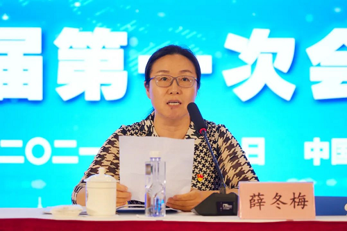 薛冬梅宣读《关于同意召开上海市奉贤区奉城镇商会第五届第一次会员大会的批复》。