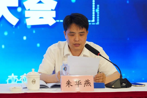 朱华燕宣读《上海市奉贤区奉城镇商会第五届理事会、监事会候选人批复》。