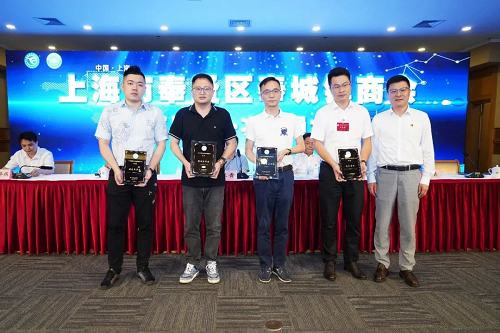 林锋为新当选的奉城镇青年商会会长、常务副会长、副会长颁发证书。